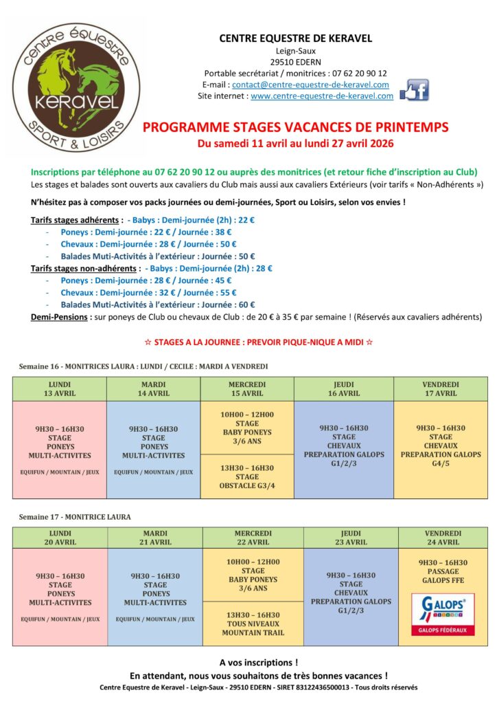 Stages vacances de Printemps
